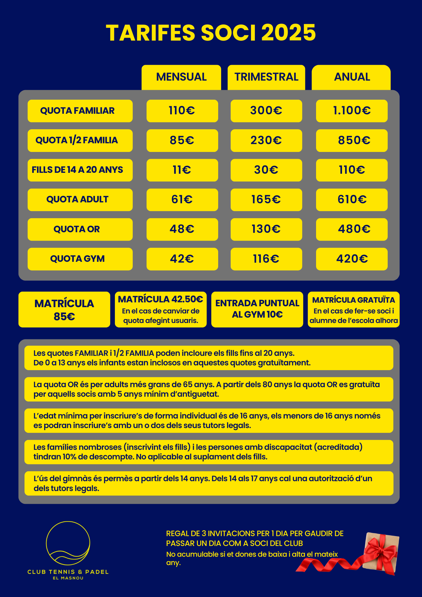Amb gran afluència de jugadors i jugadores, el Club permet llogar pistes, entrenar a les seves escoles, i participar als diferents i habituals tornejos, Lliga Social, rodes, i un ampli etcètera.